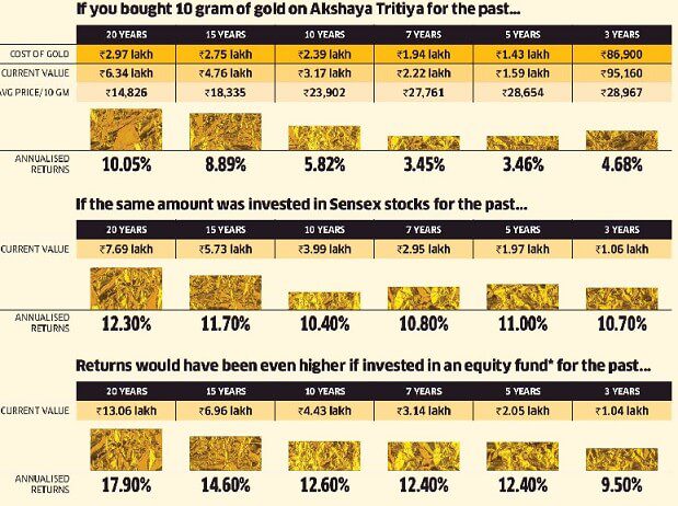 Comparison of investing in Gold and Stocks and Mutual Funds on Akshaya Tritiya