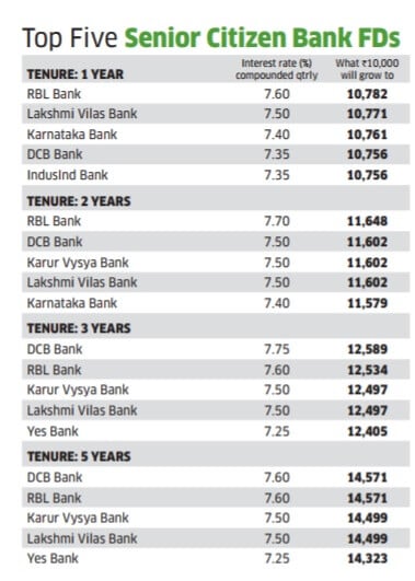 Top Senior FD Fixed Deposit Rates across different tenures