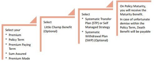 - It provides Little Champ Benefit where in the case of unfortunate demise of the Policyholder, the policy shall continue and the child receives the Policy benefits as planned.