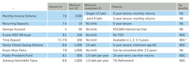 Post office small savings scheme rates from 1 Jul to 30 Sep 2016