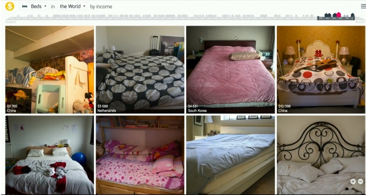 Dollar Street was invented by Anna Rosling Rönnlund at Gapminder. She wanted to show how people really live. It seemed natural to use photos as data so people can see for themselves what life looks like on different income levels. Dollar Street lets you visit many, many homes all over the world. Without travelling. A team of photographers have documented over 264 homes in 50 countries, and the list is growing. In each home, the photographer spends a day taking photos of up to 135 objects, like the family’s toothbrushes or favourite pair of shoes. All photos are then tagged (household function, family name and income).