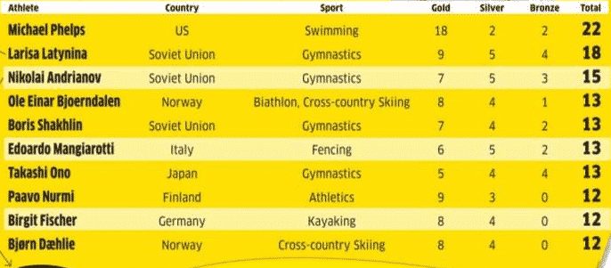 Athletes with maximum Olympic medals