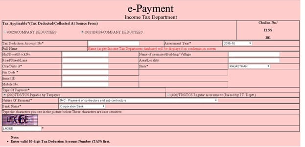 E-payment for TDS on rent
