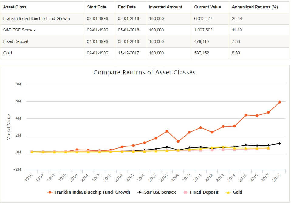 mutual-fund-compare-fixed-deposit-gold-sensex